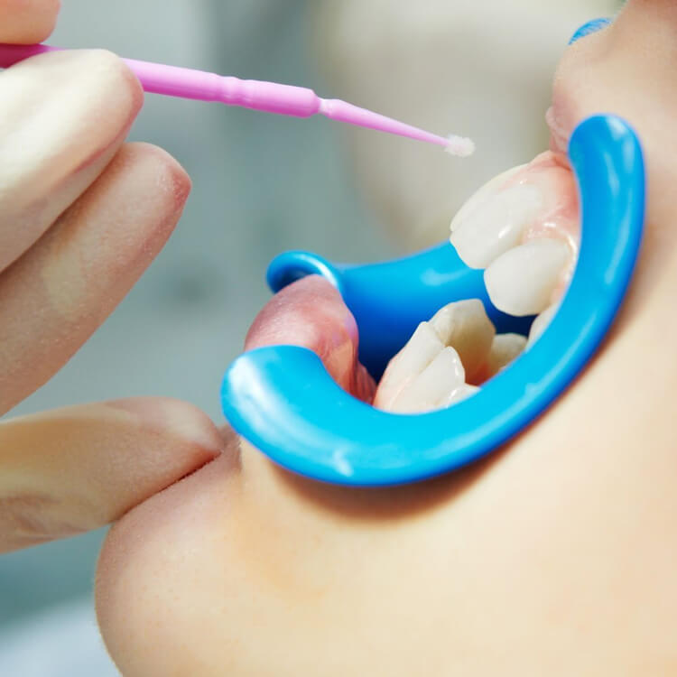 If the grooves in permanent molars are sealed at a young age, the risk of decay occurring on the chewing surfaces decreases dramatically. Fortunately, this procedure can be done quickly and without any discomfort or anesthetic. The sealant material creates a smooth surface, filling in the grooves, making the biting surface easier for little hands to keep clean. A resin material is flowed over the grooves and sealed quickly with a blue activating light. Within a few minutes, your child’s teeth are protected against cavities.